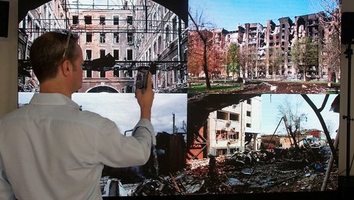 Bjorn Geledhof, người tổ chức cuộc triển lãm này, cho biết : "Tại đây, các bạn có một tấm bản đồ mà chúng tôi đã thực hiện cùng với Ân Xá Quốc Tế và tổng chưởng lý, chỉ trưng bày những trường hợp đã rõ ràng là hãm hiếp và sát nhân. Những ca này đã được mở điều tra. Còn như Mariupol chẳng hạn, được để một dấu hỏi vì chúng tôi chẳng biết được gì, do không vào được nên chúng tôi không thể xác minh".