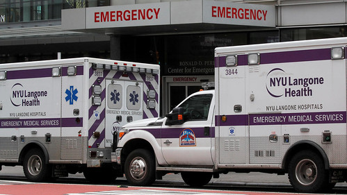 Xe cứu thương bên ngoài bệnh viện Langon Hospital New York, Hoa Kỳ. Ảnh chụp ngày 31/03/2020. Reuters - BRENDAN MCDERMID