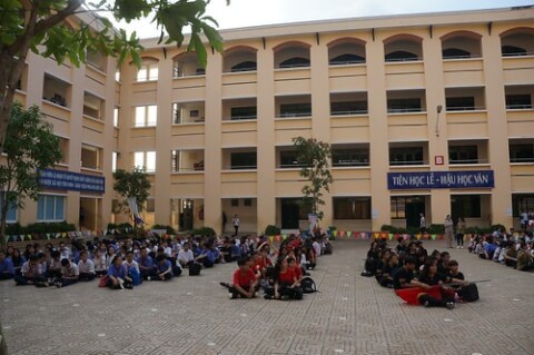 Học sinh trong sân trường Trung học cơ sở Nguyễn Văn Luông, tọa lạc ở quận 6, Thành phố Hồ Chí Minh