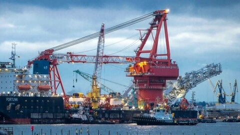 Một tàu lai dắt tham gia đặt đường ống dẫn khí đốt Nord Stream 2 nối Nga đến Đức, tại cảng Wismar, Đức, ngày 14/01/2021. AP - Jens Buettner