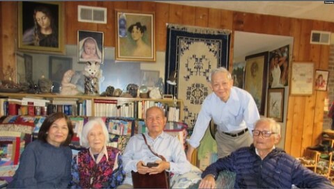 Từ trái : Nhà thơ Trần Mộng Tú, Linh Bảo, Đỗ Quý Toàn, Phạm Phú Minh, Doãn Quốc Sỹ. (Hình : Nhà báo Phạm Phú Minh cung cấp)