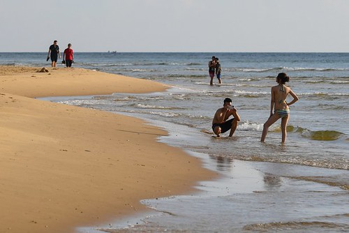 Nhìn quanh, hầu như tất cả đàn bà con gái khắp bãi biển, bất kể độ tuổi, ngoại hình, đều đang phấp phới trong những chiếc khăn choàng sặc sỡ, hoặc thướt tha trong vô số kiểu maxi đủ màu sắc.