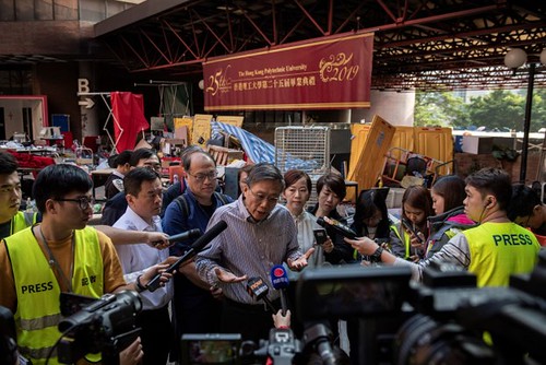 Ảnh minh họa : Chủ tịch Đại học Bách Khoa Hong Kong phát biểu với báo giới ngày 20/11/2019 - AFP