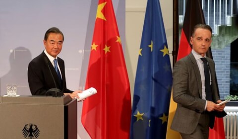 Điều này được phản hồi gần như ngay lập tức bởi bộ trưởng ngoại giao Đức Heiko Maas. Đứng bên cạnh Vương tại cuộc họp báo chung, ông Maas nhắc vị khách rằng "người Châu Âu chúng tôi hành động chặt chẽ với nhau" và yêu cầu sự tôn trọng, nói rằng "những lời đe dọa là không phù hợp ở đây." Ông thêm rằng Liên minh Châu Âu sẽ không là "quân cờ" trong mối quan hệ kình địch Trung – Mỹ. Những người đồng cấp ở Pháp, Slovakia, và các quốc gia Châu Âu khác nhanh chóng tiếp lời ủng hộ ông Maas.