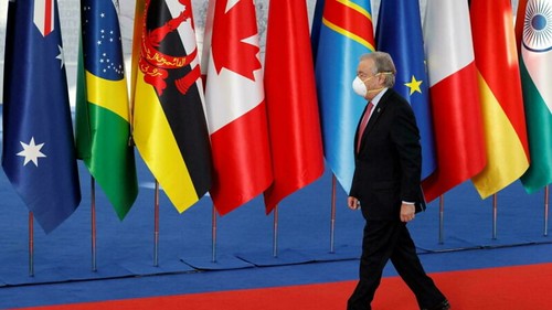 Tổng thư ký Liên Hiệp Quốc, Antonio Guterres đến dự G20-Roma. Ảnh ngày 30/10/2021. Reuters – Guglielmo Mangiapane