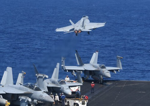Máy bay chiến đấu của Mỹ trên tàu sân bay Theodore Roosevelt ở Biển Đông hôm 10/4/2018 - AFP