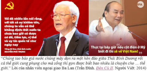 Hỏi cho có (hỏi) thế thôi chứ "ta" thì quả lắm điều nhiều chuyện thật và toàn là những chuyện tào lao, chỉ ghẹo cho chúng chửi thôi ! Khi khổng khi không, Phát ngôn viên Phạm Thu Hằng (Bộ Ngoại giao) tuyên bố là : "Việt Nam lấy làm tiếc và kiên quyết phản đối việc Úc đã phát hành các vật phẩm với hình ảnh ‘cờ vàng’, cờ của một chế độ đã không còn tồn tại".