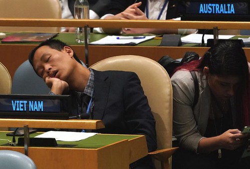 Ảnh minh họa : Một thành viên của phái đoàn Việt Nam ngủ gật tại Phiên họp cấp cao Đại hội đồng Liên Hiệp Quốc khóa 73 tại trụ sở Liên Hiệp Quốc ở New York ngày 25 tháng 9 năm 2018. AFP PHOTO