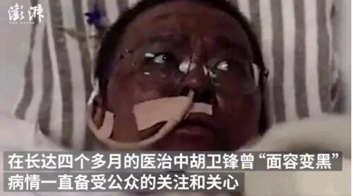 Sau bốn tháng chiến đấu với virus corona, bác sĩ Hồ Vệ Phong đã qua đời tại Trung Quốc hôm 02/06/2020. Ông là đồng nghiệp cùng làm việc tại bệnh viện Vũ Hán với bác sĩ Lý Văn Lượng, người báo động dịch. Bác sĩ Hồ Vệ Phong còn được biết đến là bệnh nhân chuyển màu da đen do trong quá trình điều trị Covid-19