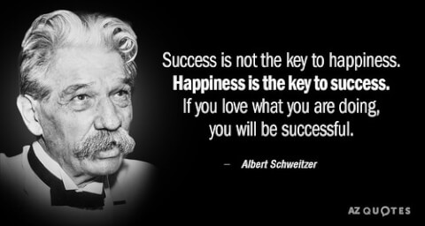 Albert Schweitzer có châm ngôn hay : Thành công không phải là chìa khóa đến hạnh phúc. Hạnh phúc là chìa khóa thành công. Nếu một người thích những gì mình đang làm, họ sẽ thành công
