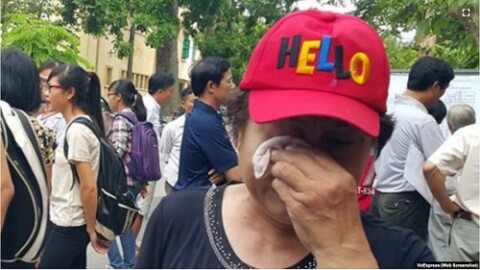 Một phụ huynh học sinh Việt Nam bật khóc trong đợt xét tuyển đại học con mình tham gia. Hình minh họa.