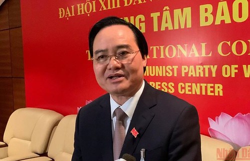 Bộ trưởng Bộ Giáo dục và Đào tạo Phùng Xuân Nhạ phát biểu bên lề Đại hội Đảng XIII, hôm 28/1. Courtesy moet.gov.vn