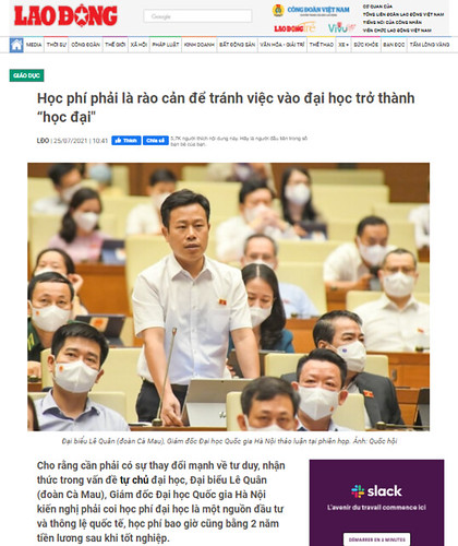 Truyền thông Nhà nước Việt Nam đồng loạt đăng tải phát biểu của Đại biểu quốc hội - Giáo sư Lê Quân tại kỳ họp thứ nhất Quốc hội khóa XV, diễn ra vào sáng ngày 25/7.
