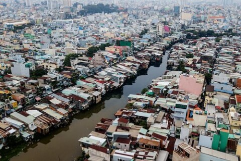 Hình chụp hôm 19/10/2018 : các căn nhà hai bên kênh Xuyên Tâm ở Thành phố Hồ Chí Minh - AFP