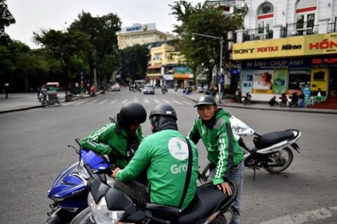 Tài xế xe công nghệ ở Hà Nội. AFP PHOTO