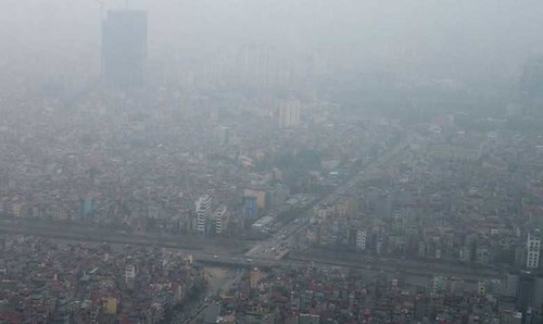 Không khí Hà Nội ô nhiễm khiến nhiều người dân lầm tưởng là sương mù vào lúc sáng sớm. Nguồn : VTC