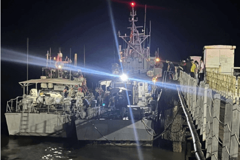 Các tàu tuần tra của Hải quân Thái Lan cập cảng Ranong sau khi giải cứu thủy thủ đoàn của tàu cá bị Hải quân Myanmar bắn trúng - Ảnh : Cơ quan thực thi hàng hải Thái Lan
