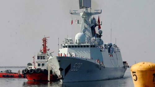 Chiến hạm Wuhu lớp 054A có tên lửa dẫn đường của Trung Quốc chuẩn bị cập cảng Manila, Philippines, ngày 17/01/2019. Bộ Quốc phòng Úc lên án chiến hạm Trung Quốc chiếu tia laser vào máy bay P-8A Poseidon hôm 17/02/2022 ở biển Arafura. AP - Bullit Marquez