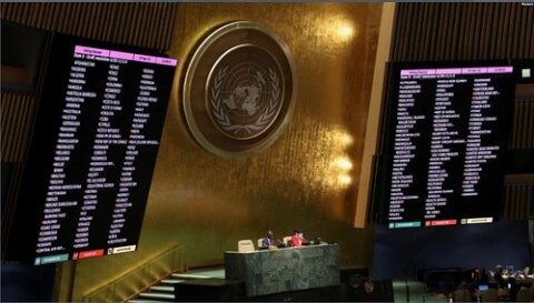 Như Bill Haydontóm tắc trên BBC : "Lần đầu tiên là nhằm lên án cuộc xâm lược ; Việt Nam đã bỏ phiếu trắng. Lần thứ hai là yêu cầu bảo vệ dân thường ; Việt Nam lại bỏ phiếu trắng. Lần thứ ba, vào ngày 7/4, là trục xuất Nga khỏi Hội đồng Nhân quyền Liên Hiệp Quốc ; Việt Nam bỏ phiếu chống". Haydon nhận định rằng quan điểm của Việt Nam trong mỗi lần biểu quyết này giống hệt như Trung Quốc và Lào.