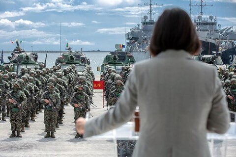 Lãnh đạo Đài Loan – bà Thái Anh Văn phát biểu khai mạc đợt tập trận Han Kuang hồi tháng 7 của lực lượng phòng vệ hòn đảo. Ảnh : Reuters