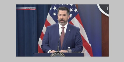 Phát ngôn viên bộ Quốc Phòng Mỹ Sean Parnell trong một cuộc họp báo tại Lầu Năm Góc, Washington, Hoa Kỳ, ngày 17/03/2025. AP - Jacquelyn Martin