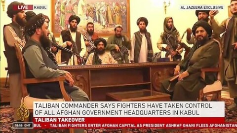 Các thủ lĩnh Taliban chiếm Phủ tổng thống Afghanistan. Ảnh : Al Jazeera