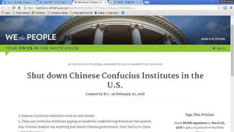Blogger kiến nghị Tòa Bạch Ốc đóng cửa các Viện Khổng Tử tại Hoa Kỳ. (白宫请愿网站截图)