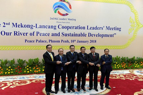 Lãnh đạo 6 nước tham gia diễn đàn Mekong-Lancang về phát triển bền vững và hòa bình trên song Mekong tại Campuchia vào năm 2018 - AFP