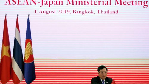 Bộ trưởng Ngoại giao Việt Nam Phạm Bình Minh ở hội nghị ASEAN và Nhật tại Bangkok, Thái Lan hôm 1/8/2019 AFP