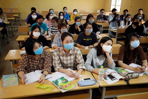 Sinh viên Đại học Sư phạm Hà Nội trở lại trường hôm 1/3/2020 sau thời gian trường đóng cửa do dịch Covid-19. Reuters