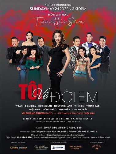 Chương trình nhạc "Tôi vẽ đời em : dòng nhạc Trần Hải Sâm" đã diễn ra trên sân khấu Elizabeth A. Hangs tại Thính đường Santa Clara Convention Center