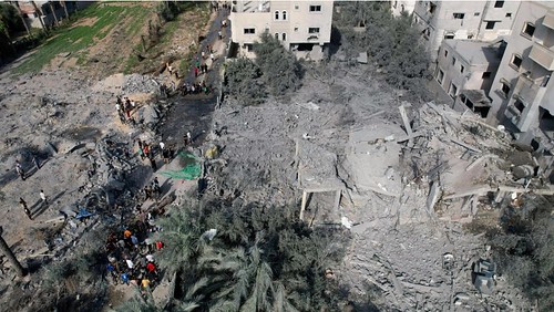 Người dân Palestine tụ tập tại một địa điểm ở Deir Al-Balah thuộc Gaza sau trận oanh kích của Israel ngày 06/11/2023. Reuters - Stringer
