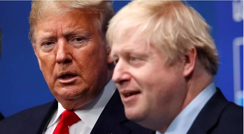 Thủ tướng Anh Boris Johnson (phải) và tổng thống Mỹ Donald Trump trong thượng đỉnh NATO, tại Watford, Anh, ngày 04/12/2019. Reuters - Peter Nicholls