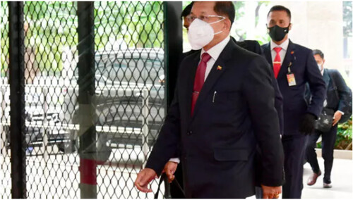 Tướng Min Aung Hlaing, lãnh đạo tập đoàn quân sự Miến Điện đến dự thượng đỉnh ASEAN tại Jakarta (Indonesia) ngày 24/04/2021 trong bộ quần áo dân sự. AP - Muchlis Jr