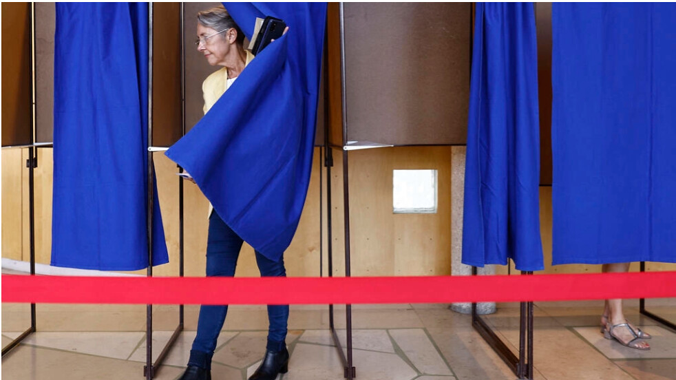 Thủ tướng Pháp Elisabeth Borne đi bầu cử Quốc hội vòng một tại Cavaldos, Pháp, 12/06/2022. AFP – Sameer Al-Doumy