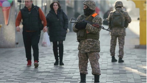 Binh lính tuần tra trên đường phố sau cuộc bạo loạn ở Almaty, Kazakhstan, 12/01/2021. Reuters – Pavel Mikheyev