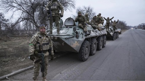 Những chiến sĩ Ukraine trên đường ra mặt trận ở Donetsk ngày 28/01/2023. AP - Andriy Dubchak