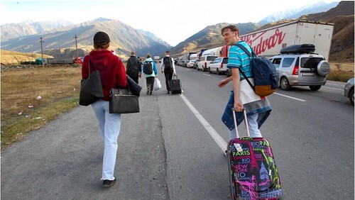 Thanh niên Nga trong độ tuổi quân dịch tìm mọi cách chạy sang nước khác sau khi Putin ra lệnh động viên. Ảnh chụp đường đến trạm biên phòng Verkhny Lars ở biên giới Georgia, ngày 28/09/2022. AP