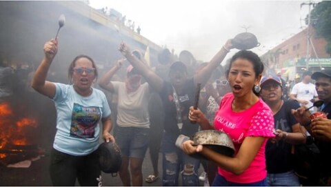 Tại Petare, La Vega, Antímano, San Agustín, Catia… những khu phố ngoại ô bình dân, làn sóng người tiến về các đại lộ ở thủ đô. Ở những thành phố khác, những cuộc biểu tình bộc phát cũng diễn ra. Nicolas Maduro nói rằng "80% người biểu tình là tội phạm", trong số đó nhiều người "đi thẳng từ Mỹ sang", trong tình trạng "phê ma túy" và "vũ trang tận răng". Nhà báo Pháp ghi nhận khi màn đêm buông xuống, mô tô cảnh sát không ngừng tuần tra các khu phố, không khí nồng nặc mùi hơi cay, nhưng cuộc hòa tấu xoong nồi lại tiếp diễn.