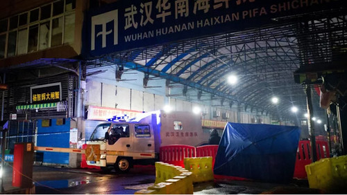 Ngày 12/1/2020, Tổ Dịch vụ vệ sinh thành phố Vũ Hán rời khỏi khu chợ bán thú rừng, nơi đã bị đóng cửa bởi các quan chức y tế và cũng là nơi bệnh nhân đầu tiên đã chết vì siêu virus Covid-19 của Trung Quốc. Noel Celis / AFP - Ảnh minh họa