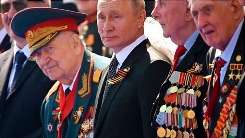 Tổng thống Nga Vladimir Putin muốn cải tổ Hiến pháp để nắm quyền đến năm 2036. Ảnh minh hoạ : ông Putin (thứ hai phải qua) chụp chung với các cựu chiến binh. AP - Sergei Guneyev