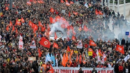 Cải cách hưu trí là một chủ đề nhạy cảm trong xã hội Pháp. Ảnh minh họa : Biểu tình phản đối một dự án cải cách hưu trí tại Lyon, Pháp, năm 2010. AFP/Jean-Pierre Clatot