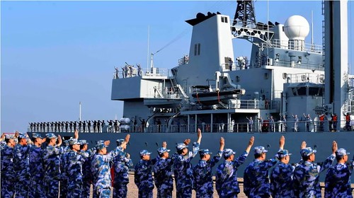 Ảnh minh họa : Tiễn chào một tàu tiếp liệu rời cảng Thanh Đảo ở Sơn Đông, Trung Quốc đi làm nhiệm vụ, ngày 03/09/2020. © China Daily via Reuters