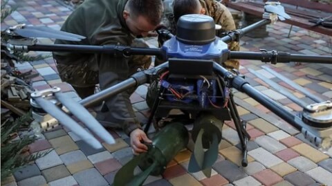 Các quân nhân thuộc lữ đoàn tác chiến 15 "Kara-Dag" thuộc Vệ binh Quốc gia Ukraine gắn chất nổ vào một drone tác chiến trước khi điều khiển bay đi tấn công quân Nga ở gần Pokrovsk (Donetsk) ngày 09/10/2024. via Reuters - RFE/RL/Serhii Nuzhnenko