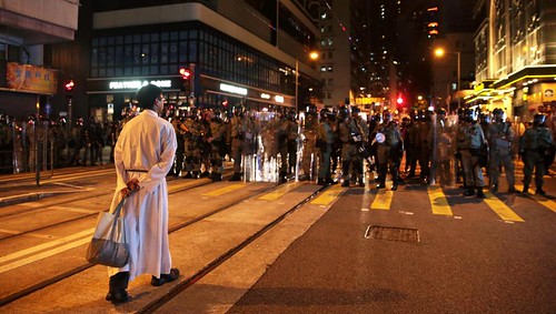 Nhiều khuôn mặt lãnh đạo Công giáo và Tin Lành ở Hồng Kông lâu nay tích cực đấu tranh cho dân chủ, vì họ biết rõ số phận của các tín đồ tại Hoa lục. Có thể kể : Hồng y Giuse Trần Nhật Quân (Joseph Zen), 87 tuổi, nổi tiếng chống cộng ; mục sư Chu Diệu Minh (Chu Yiu Ming), 75 tuổi, bị kết án 16 tháng tù và hai năm quản chế hồi tháng Tư vì ủng hộ phong trào "Cách mạng Dù".