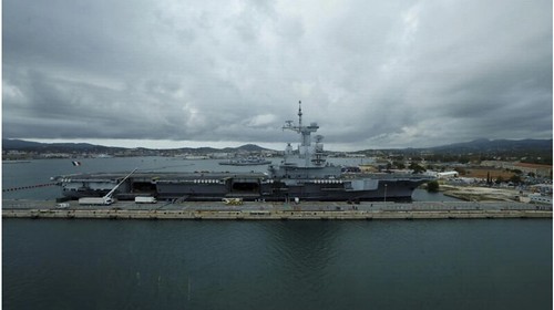 Hàng không mẫu hạm Charles de Gaulle đậu tại căn cứ hải quân ở Toulon, miền nam nước Pháp, ngày 09/11/2022. AP - Eric Gaillard