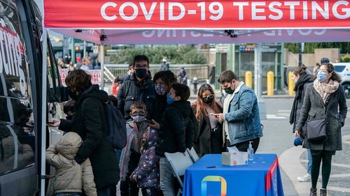 Covid làm sâu thêm hố ngăn cách giàu-nghèo: Trong 18 tháng đại dịch, các tỉ phú kiếm thêm 3.600 tỉ đô la, thêm 100 triệu người rơi vào nghèo đói (Lucas Chancel – WIL). Ảnh minh họa : Chờ xét nghiệm Covid tại New York, 03/12/2021. Reuters – Jeenah Moon
