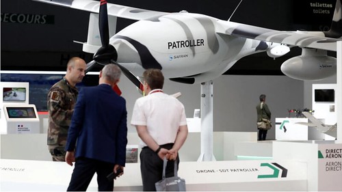 Drone Patroller hoạt động tầm trung do tập đoàn Safran (Pháp) sản xuất được trưng bày tại hội chợ vũ khí quốc tế Eurosatory ở Villepinte, ngoại ô Paris, ngày 17/06/2024. Reuters - Tessier