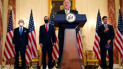 Ngoại trưởng Mỹ Mike Pompeo loan báo tái lập trừng phạt Iran ngày 21/09/2020. © AP Photo/Patrick Semansky