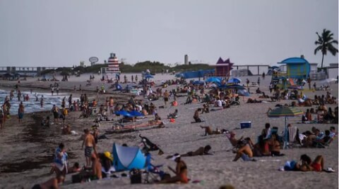 Dân chúng vẫn thư giãn trên bờ biển trong vịnh Miami Beach, bang Florida, nơi đã ghi nhận những con số tử vong kỷ lục vì Covid-19 tại Hoa Kỳ. AFP